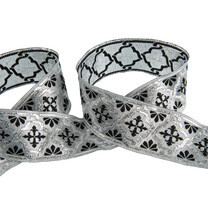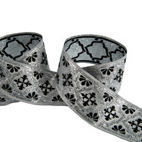 Лента жаккардовая 40 мм "Gamma" TRJ-66 10 м отделочная(галун православный) серебро/черныйВойдите в личный кабинет,