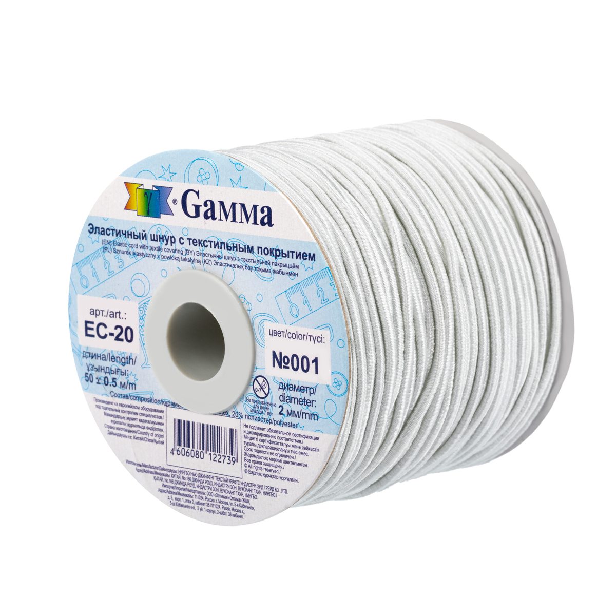 Шнур Gamma 2 мм EC-20 эластичный 50 м ± 0.5 м №001 белый. В интернет-магазине Лео-Хобби широкий ассортимент товаров, быстрая доставка и регулярные скидки.