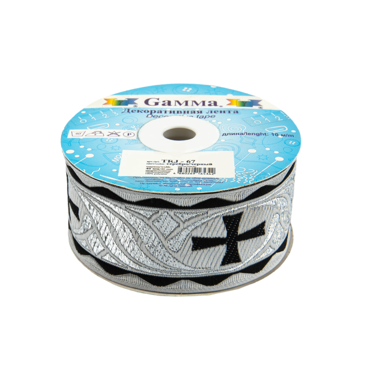 Лента жаккардовая 40 мм Gamma TRJ-67 10 м отделочная(галун православный) серебро/черный. В интернет-магазине Лео-Хобби широкий ассортимент товаров, быстрая доставка и регулярные скидки.
