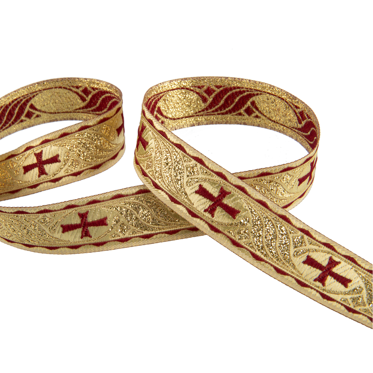 Лента жаккардовая 25 мм Gamma TRJ-67 10 м отделочная(галун православный) золото/бордовый. В интернет-магазине Лео-Хобби широкий ассортимент товаров, быстрая доставка и регулярные скидки.