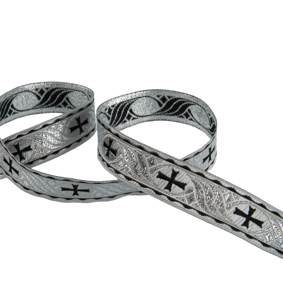 Лента жаккардовая 25 мм Gamma TRJ-67 10 м отделочная(галун православный) серебро/черный. В интернет-магазине Лео-Хобби широкий ассортимент товаров, быстрая доставка и регулярные скидки.