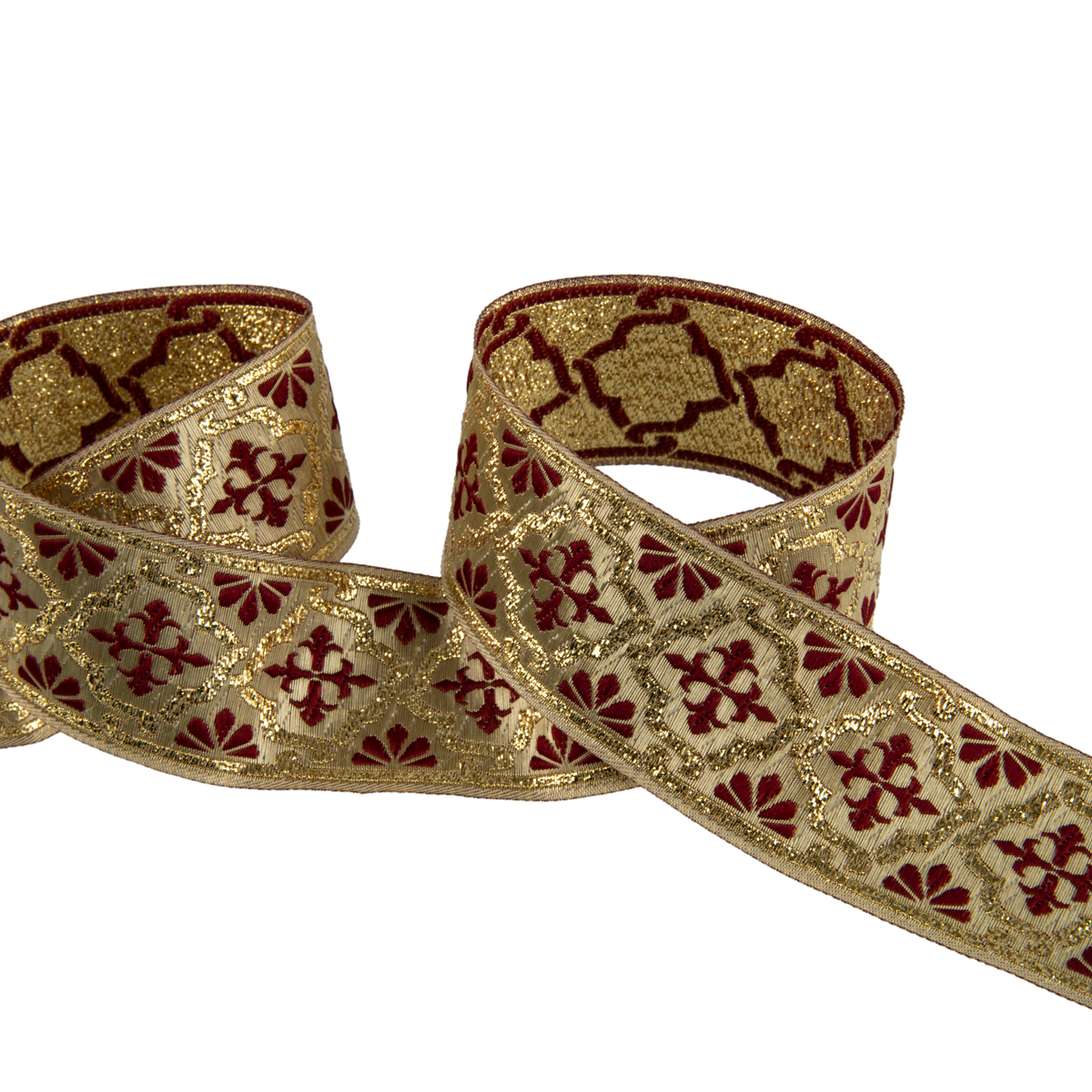 Лента жаккардовая 40 мм "Gamma" TRJ-66 10 м отделочная(галун православный) золото/бордовый