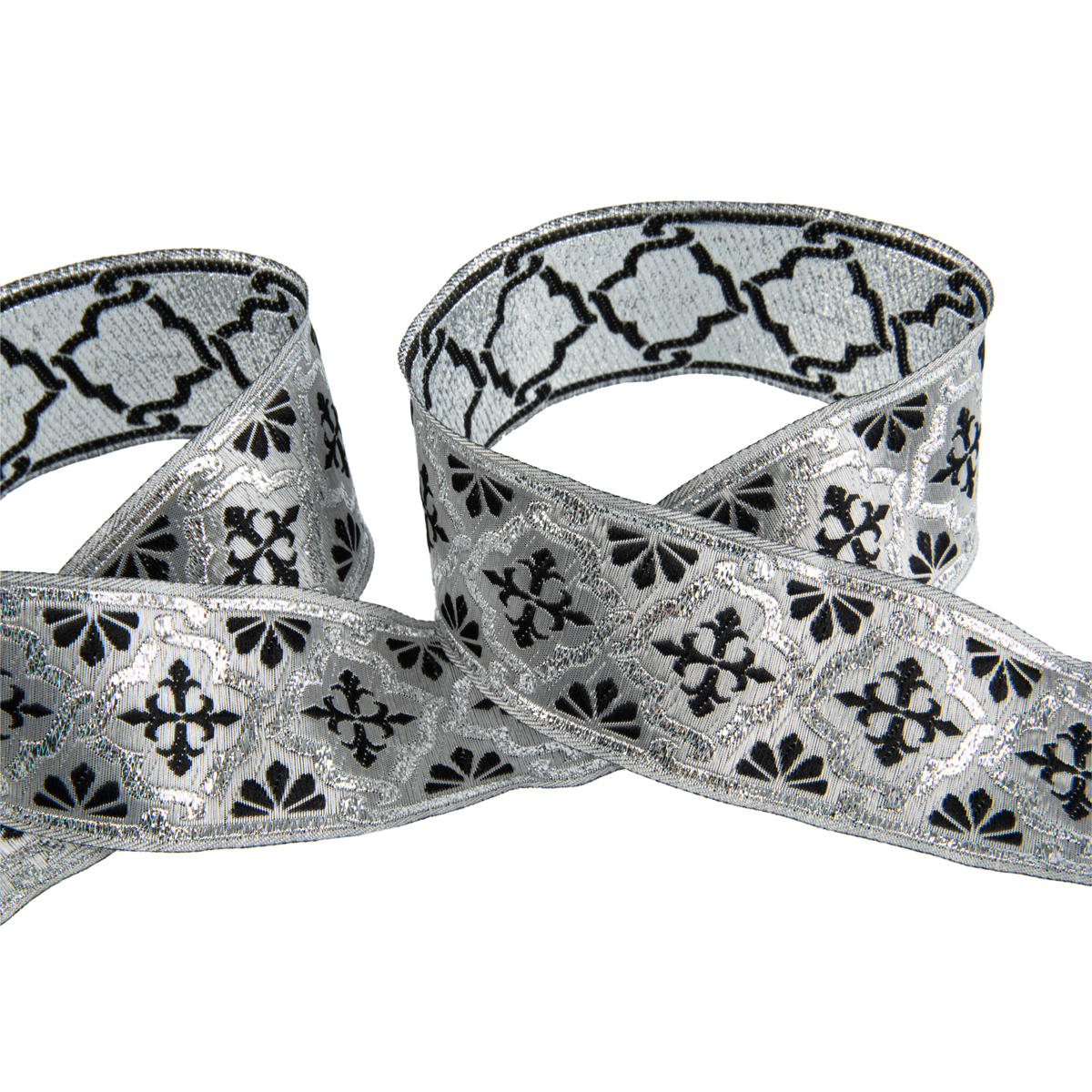Лента жаккардовая 40 мм "Gamma" TRJ-66 10 м отделочная(галун православный) серебро/черный