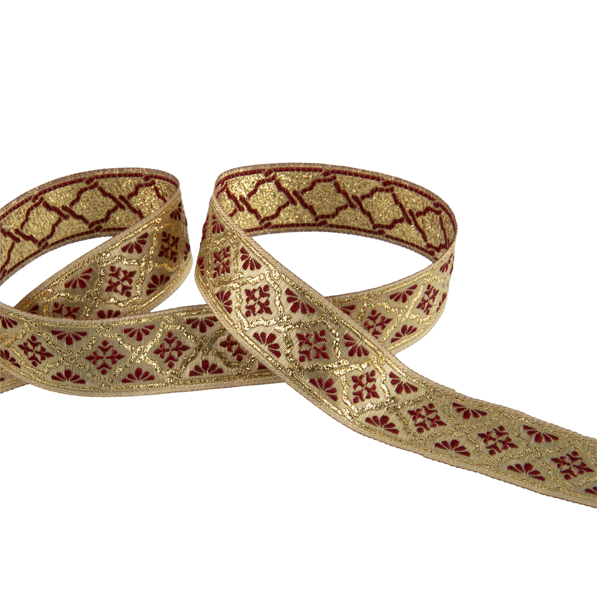 Лента жаккардовая 25 мм "Gamma" TRJ-66 10 м отделочная(галун православный) золото/бордовый