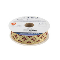 Лента жаккардовая 25 мм "Gamma" TRJ-66 10 м отделочная(галун православный) золото/бордовый