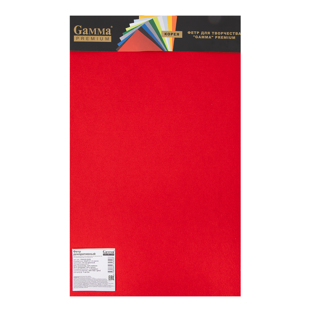 Фетр Gamma Premium FKS15-33/53 декоративный 1.5 мм 33 см х 53 см ST-12 красный. В интернет-магазине Лео-Хобби широкий ассортимент товаров, быстрая доставка и регулярные скидки.