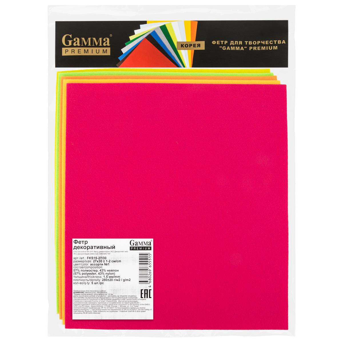 Фетр Gamma Premium FKS15-27/30 декоративный 1.5 мм 27 см х 30 см 5 шт ассорти №1. В интернет-магазине Лео-Хобби широкий ассортимент товаров, быстрая доставка и регулярные скидки.