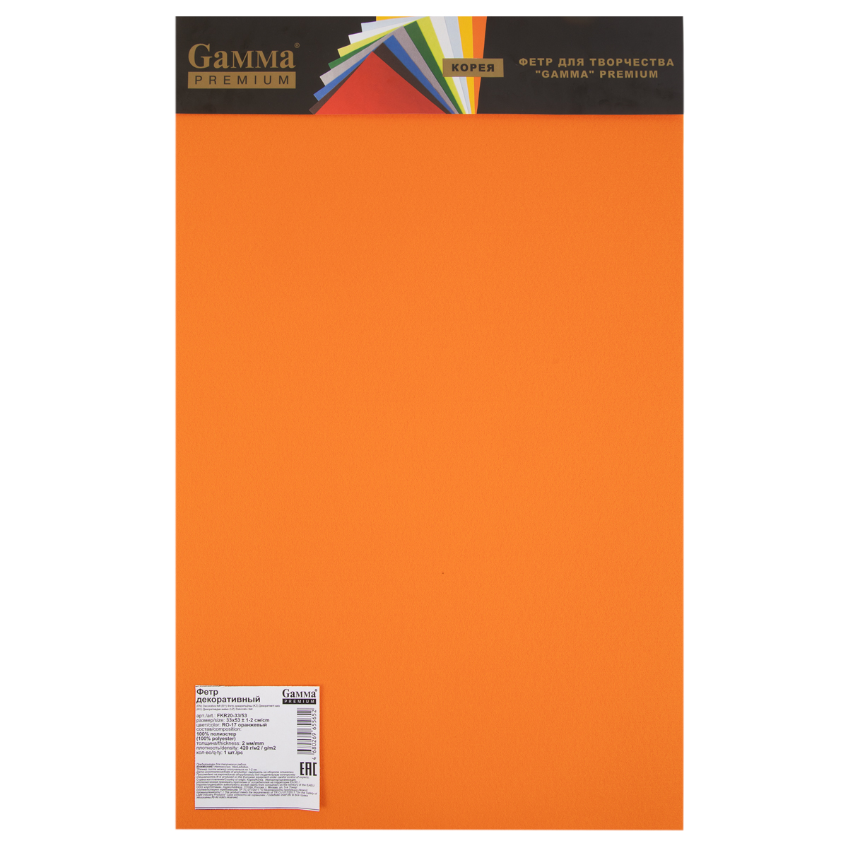 Фетр Gamma Premium FKR20-33/53 декоративный 2 мм 33 см х 53 см RO-17 оранжевый. В интернет-магазине Лео-Хобби широкий ассортимент товаров, быстрая доставка и регулярные скидки.