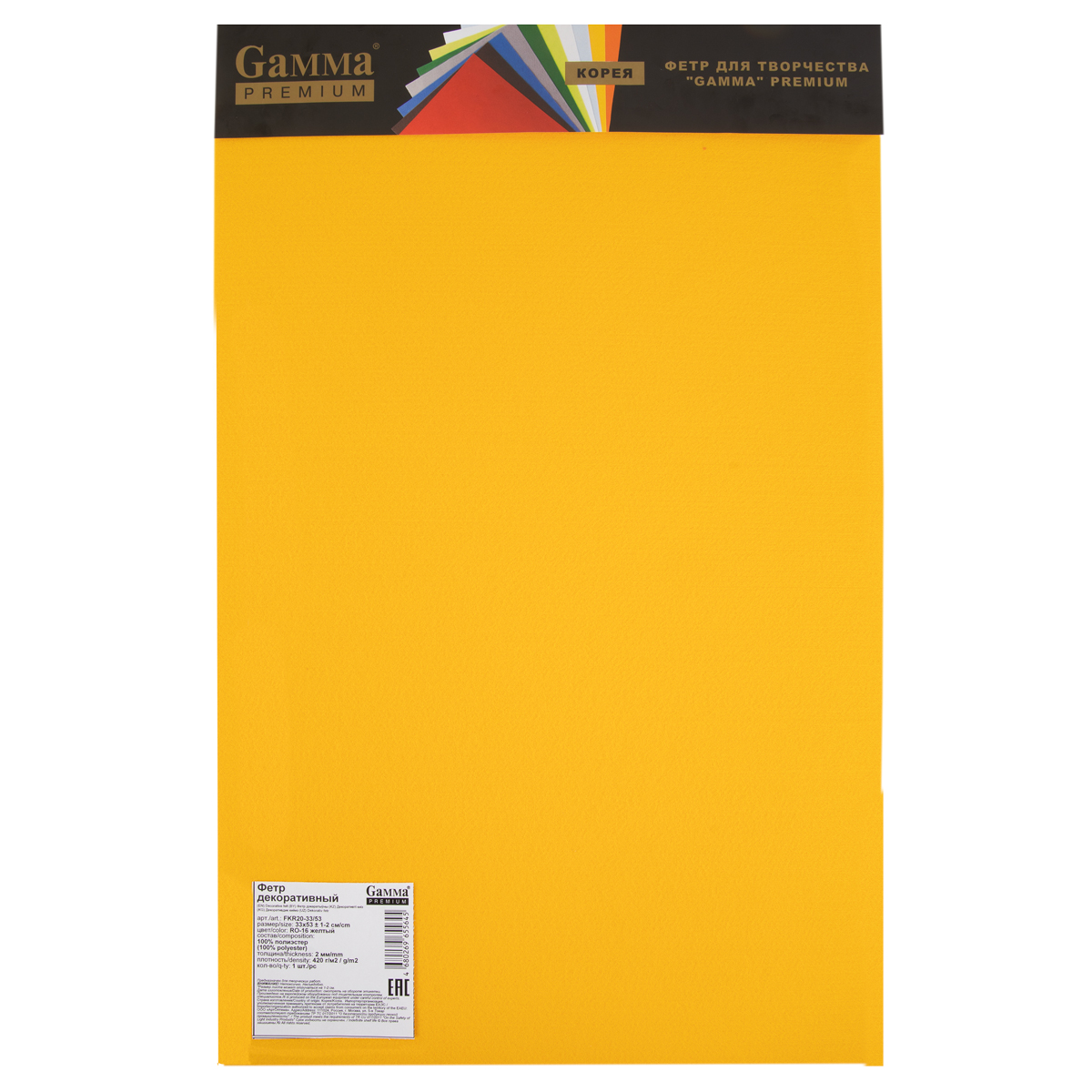 Фетр Gamma Premium FKR20-33/53 декоративный 2 мм 33 см х 53 см RO-16 желтый. В интернет-магазине Лео-Хобби широкий ассортимент товаров, быстрая доставка и регулярные скидки.